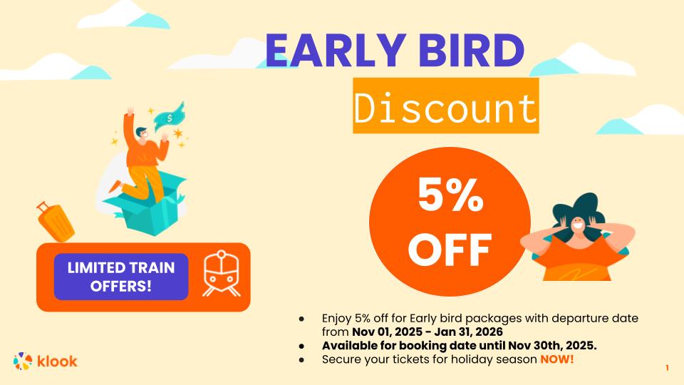 **Limited early bird offers**: 5% off for Early bird packages with departure date from Nov 01, 2025 - Jan 31, 2026 Available for booking date until Nov 30, 2025.