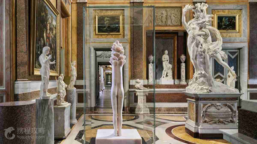 博爾蓋塞美術館原名博爾蓋塞別墅,位於博爾蓋塞花園內,被譽為羅馬乃至義大利最美麗的美術館之一。博物館以義大利巴洛克風格的雕塑和文藝復興時期的繪畫而聞名,展出紅衣主教收藏的卡拉瓦喬、貝尼尼、波提切利、拉斐爾等著名藝術家的畫作。除了常規展覽外,臨時展覽也非常豐富多彩。不過,博爾蓋塞美術館對參觀人數有嚴格限制,參觀必須提前預約,每次參觀時間限制為2小時。博爾蓋塞藝術博物館一樓的收藏分為兩部分:一樓收藏了優秀的雕塑作品、錯綜複雜精美的羅馬式馬賽克地板和令人嘆為觀止的壁畫藝術,二樓是畫廊。博物館內不允許拍照和飲食。步入正門往下看,門廳地板上的馬賽克圖案可以追溯到4世紀,展現了古羅馬角鬥士與野獸搏鬥的場景。天花板上的壁畫由馬裡亞諾·羅西 (Mariano Rossi) 創作,描繪了羅穆盧斯 (Romulus) 接見羅馬眾神的情景。 1號廳是博格賽美術館的亮點之一,在這裡可以欣賞卡諾瓦拿破崙妹妹的大理石雕像,非常優雅,就像維納斯一樣。 2-4號展廳展出了吉安·洛倫佐·貝尼尼的早期雕塑作品,其中《大衛》、《阿波羅與達芙妮》和《綁架普羅斯·阿爾皮娜》(TheRapeofProsepine)非常值得觀賞。 5號館展示了一些重要的古典雕塑,其中大部分是羅馬人根據希臘雕塑製作的複製品。其中,法翁和赫爾瑪·佛洛狄忒是亮點。貝尼尼的《埃涅阿斯與安喀塞斯》佔據了整個6號廳,而7號廳則主要以埃及為主題,天花板上有孔卡的作品,描繪了古希臘的寓言,伊希斯的雕像可以追溯到2世紀。 8號廳有許多卡拉瓦喬的作品,包括《一籃子水果的男孩》、《生病的巴克斯》、《大衛與歌利亞頭》(DavidwiththeHeadofGoliath)和《施洗者約翰》(StJohntheBaptist) 。二樓畫廊也收藏許多文藝復興時期的畫作,包括拉斐爾的《沉積》、平圖裡喬的《聖徒傑羅姆和克里斯多福的受難》(CrucifixionwithSaintsJeromeandChristopher)、科羅吉奧為西班牙查理五世創作的《達那厄》、盧卡斯·卡拉納奇的《蜂巢中的維納斯與丘比特》( 《維納斯與丘比特與蜂巢》、《索多瑪聖母憐子圖》、魯本斯的《蘇珊娜與長老們》、提香的《維納斯蒙住丘比特的眼睛》以及《神聖與世俗的愛情》。博爾蓋塞美術館位於博爾蓋塞別墅內,裡面收藏著博爾蓋塞紅衣主教收藏的雕塑、繪畫等珍品。你可以欣賞貝尼尼的《阿波羅與達芙妮》和《強姦波西皮娜雕像》,還有拉斐爾1507年創作的《耶穌倒在十字架上》,提香的《神聖與世俗的愛》等。