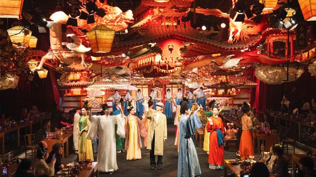 一.《長安賦》:上海市靜安區汶水路40號敍宴*午宴-11:50-13:50 *午餐-11:50-13:50*晚宴-18:50-20:50*晚餐-18:50-20:50*預約妝髮 建議抵達時間: 午宴 9:45-11:00 晚宴 16:45-18:00傳統化妝建議抵達時間:午餐時段 上午9:45-11:00,晚餐時段 下午4:45-6:00*化妝因現場取號排隊,先到先安排,建議提前入店,以免遲到耽誤睇演出時間。只需要換裝,開宴前半個鐘到就可以。化妝服務採取現場取號排隊方式,先到先得。建議提早到場以免延誤,影響觀賞表演時間。若只需更換服裝,於宴會開始前半小時抵達即可。二、《萬邦來朝》:上海市靜安區汶水路40號敍宴*午宴-11:50-13:30 *午餐-11:50-13:30*晚宴-18:50-20:30*晚餐-18:50-20:30*預約化妝造型 建議抵達時間: 午宴 9:45-11:00 晚宴 16:45-18:00傳統化妝建議抵達時間:午餐時段 上午9:45-11:00,晚餐時段 下午4:45-6:00*化妝需現場取號排隊,先到先安排,建議提前入店,以免遲到耽誤演出時間。只需換裝,開宴前半個小時到即可。化妝服務採取現場取號排隊方式,先到先得。建議提早到場以免延誤,影響觀賞表演時間。若只需更換服裝,於宴會開始前半小時抵達即可。三、《敘·敦煌》:上海市虹口區北外灘來福士3層水星中庭01-02*午宴-11:50-13:30 *午餐-11:50-13:30*晚宴-18:50-20:30*晚餐-18:50-20:30*預約化妝造型 建議抵達時間: 午宴 9:45-11:00 晚宴 16:45-18:00傳統化妝建議抵達時間:午餐時段 上午9:45-11:00,晚餐時段 下午4:45-6:00*化妝需現場取號排隊,先到先安排,建議提前入店,以免遲到耽誤演出時間。只需換裝,開宴前半個小時到即可。化妝服務採取現場取號排隊方式,先到先得。建議提早到場以免延誤,影響觀賞表演時間。若只需更換服裝,於宴會開始前半小時抵達即可。