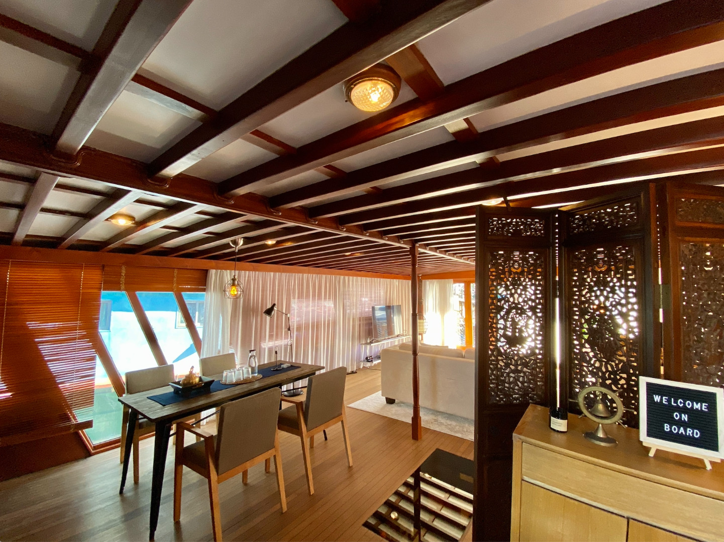 船屋以木製和竹製的家具塑造出英式複古風格,為寬敞的空間增添懷舊感,讓你能夠感受大海的寧靜氣息。在香港仔避風塘中心體驗船屋渡假,遠離城市煩囂,享受非同凡響的海景,還可以觀賞日落,感受海風。船屋亦可以作為您的派對勝地。