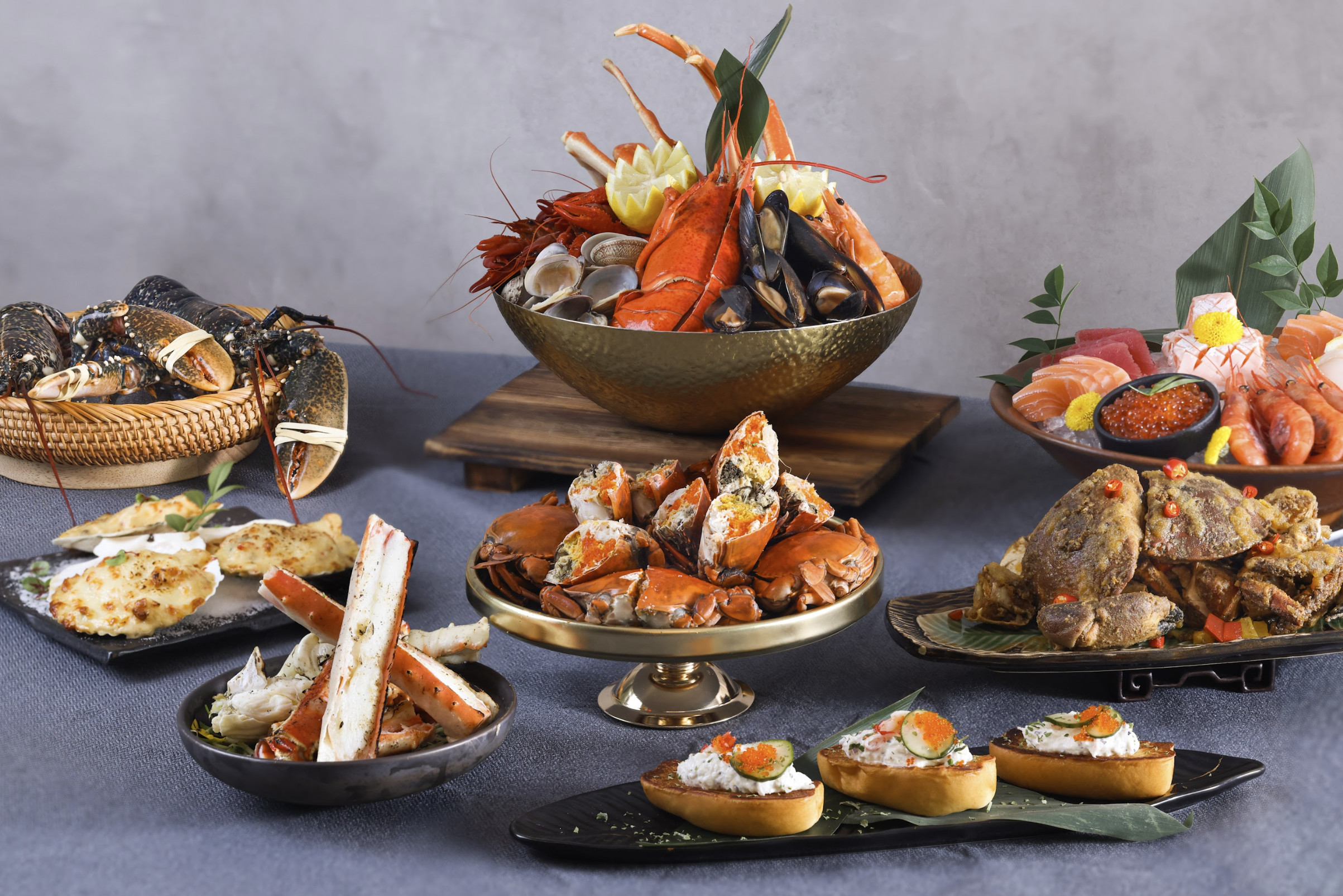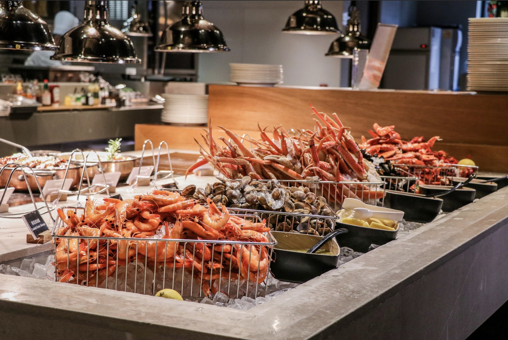 盡情品嚐The Market人氣阿拉斯加帝王蟹自助晚餐,除了廣受歡迎的日本直送燒阿拉斯加蟹腳、黃金炒蟹及多款以蟹入饌菜式外,由2026年3月2日起更全新加入多款龍蝦佳餚包括矜貴的法國藍龍蝦。精選菜式包括:即席烹調的火焰鐵板炒藍龍蝦、龍蝦海鮮粥、及龍蝦沙律配鵪鶉蛋等。廚師更會每晚表演烹調火焰秘製奄仔膏蟹。