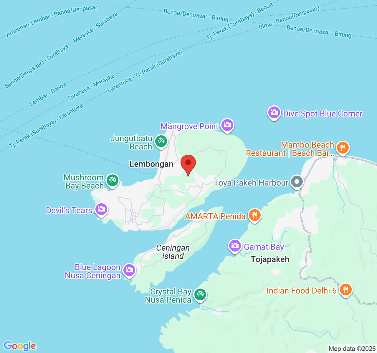 從Jungutbatu港口乘船返回Sanur或Serangan港口。
