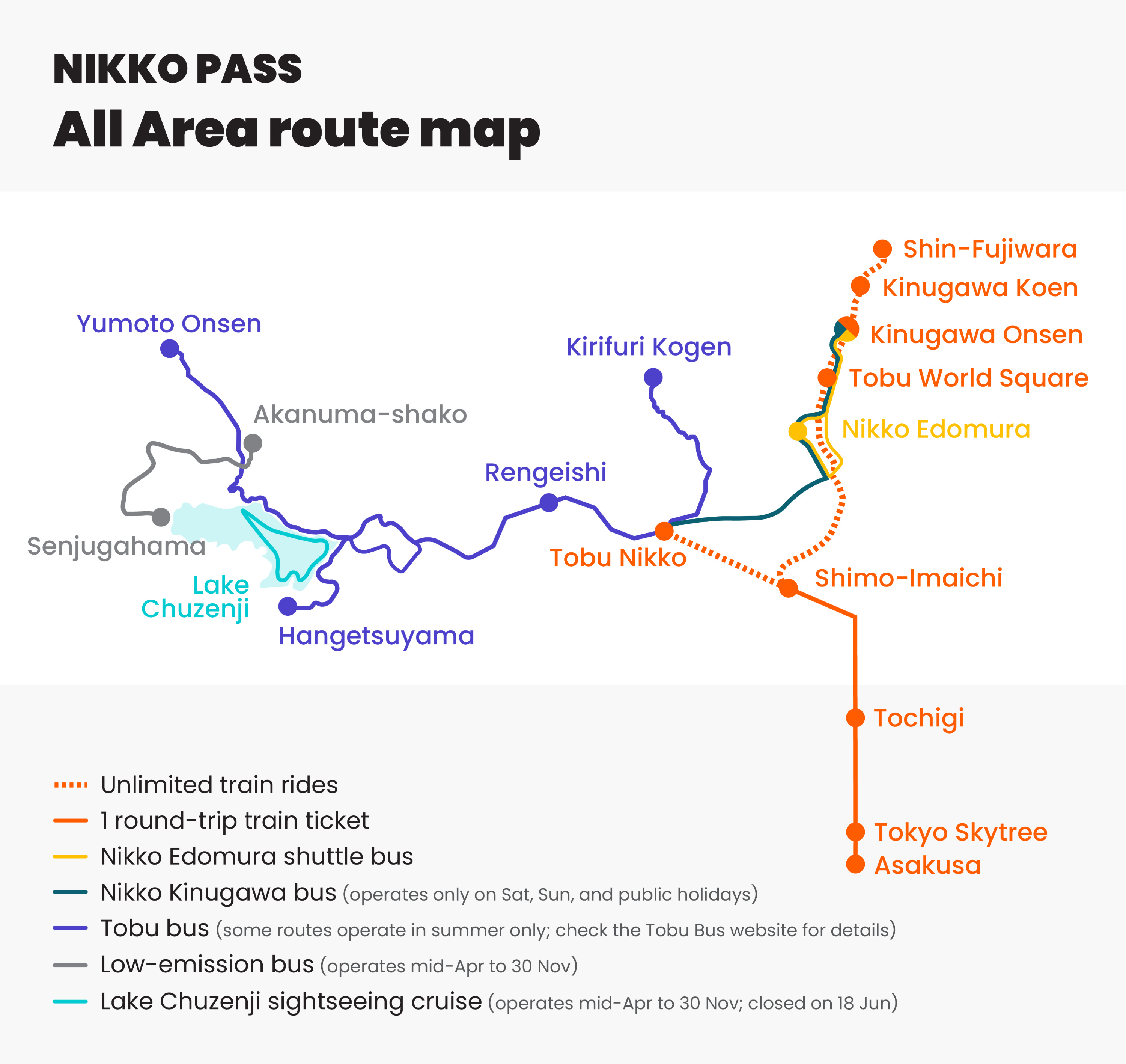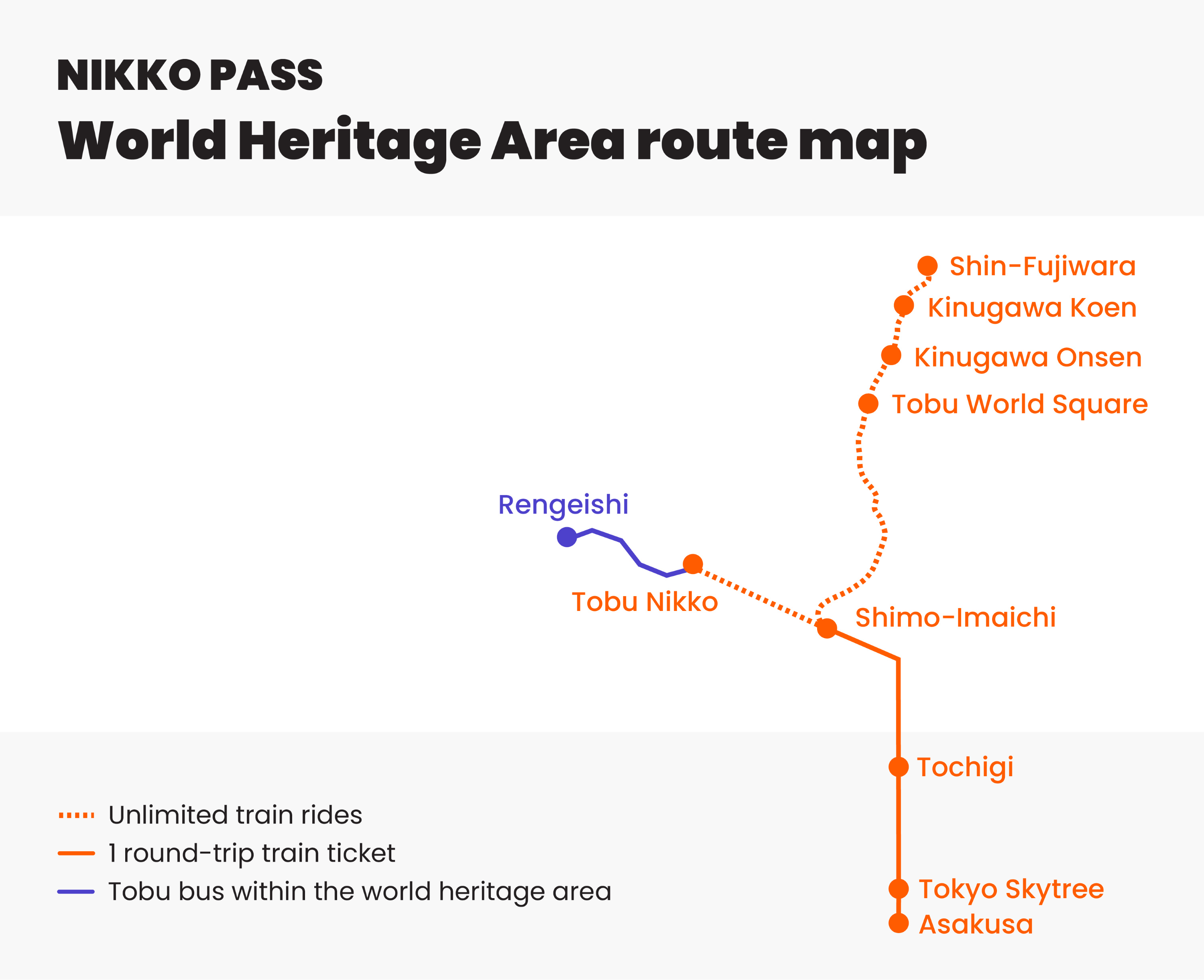 * **日光周遊券僅包含基本車資乘車券,請另行購買[特急券](https://www.klook.com/zh-TW/rails-32/1012-japan/route-4253/asakusa-to-tobu-nikko-trains/)**