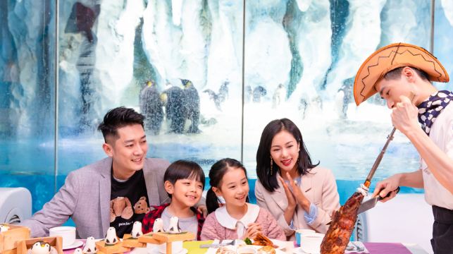 位於酒店一層,以北極冰川為主題 隨訂隨用,與企鵝共餐,觀看萌萌企鵝互動劇場 鄰近海洋王國,暢享美食可返園遊玩,美食不限量供應