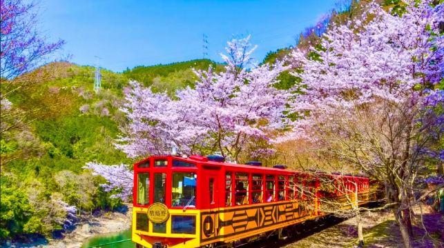 乘坐嵐山嵯峨野觀光小火車,穿梭於嵐山之間,欣賞四季變換的美麗景觀,體驗不一樣的自然風情。