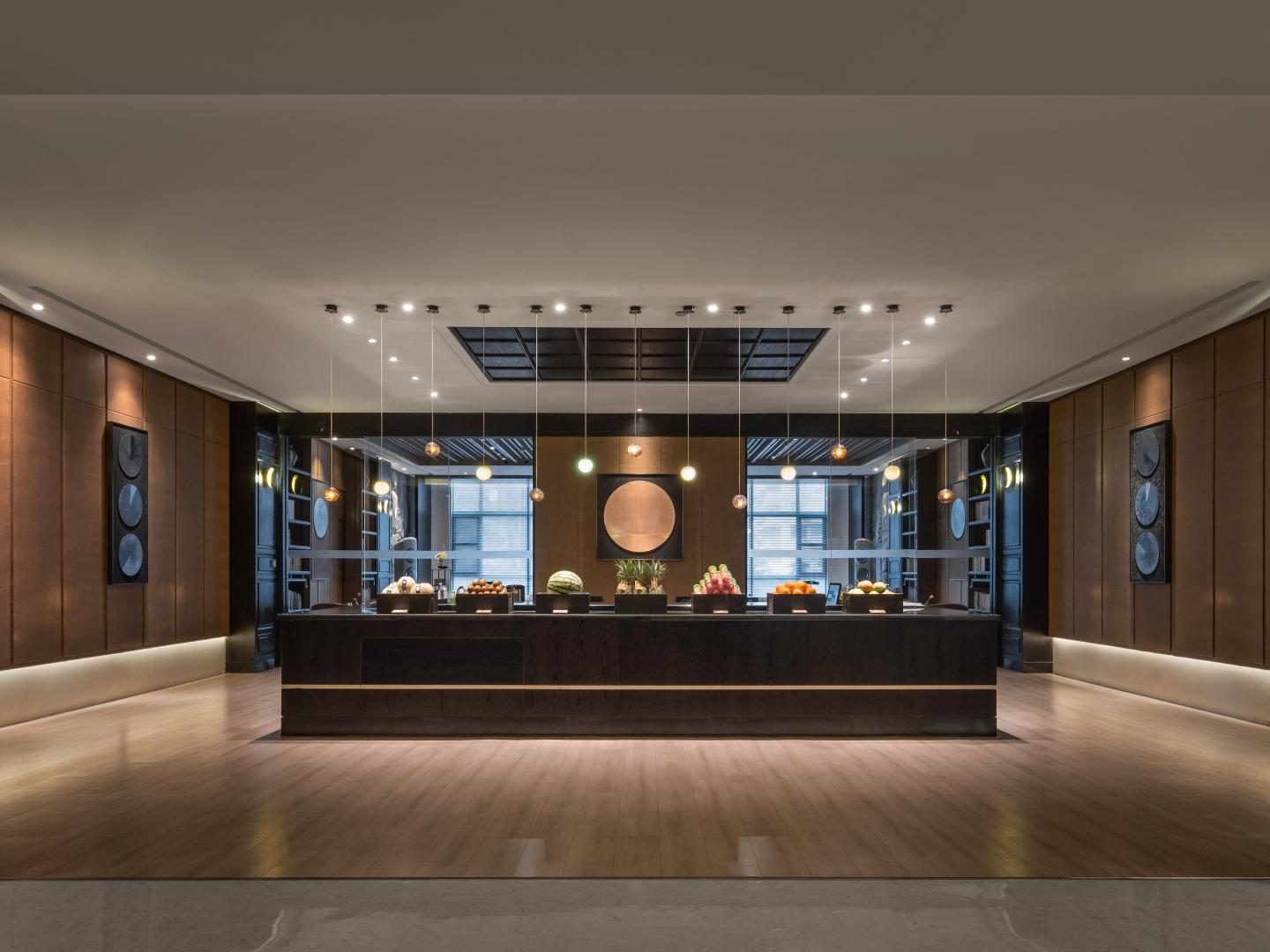 武漢市首家曲水蘭亭門店,於2016年開業,將中式設計的江南園林與水景禪意巧妙結合,再現自然。前場極簡,莊重與含蓄井存,水作鏡、房為柱、天為幕,和諧共生;內裏曲徑通幽,富有江南温婉的唐宋氣韻撲面而來。黑檀色空間,充滿禪意靜謐,緩緩流水縈繞於耳