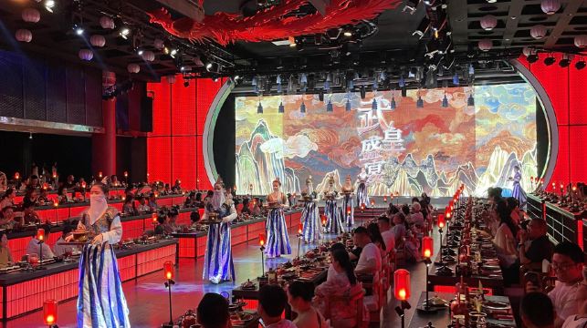 應武皇之邀,赴一場宮廷盛宴。四海昇平、萬邦來朝、鶯歌燕舞,一朝步入畫卷,一宴夢迴千年!關於位置:西工店:洛陽水席園,這是武皇盛宴首家門店,南北兩側分別為2排,第一排至尊VIP席位、第二排標準席位,每週一休店定鼎門店:河洛第一宴,2024年開業的場地相對比較大,南北兩側分別為3排,前兩排至尊VIP、第三排標準席位,每週三休店老城十字街店:宴天下大酒店,2025年4月3日開業,是目前場地最大的武皇盛宴,南北兩側分別為4排,前兩排至尊VIP、三四排標準席位宴席時間:午膳12:00-13:30,晚膳[19:00-20:30]請您合理安排時間,提前15分鐘入場就座。請注意:1、兒童餐: 3歲以上兒童需購買全價票,3歲以下嬰幼兒不建議赴宴,以免打擾嬰兒休息。2、全場禁煙,謝絕飲酒,禁止攜帶寵物。定鼎門店地址:洛陽市洛龍區龍門大道與直人路交會處東100米(宴天下河洛第一宴二樓)西工店地址:洛陽市西工區王城大道與九都路交會處西北角洛陽水席園二樓老城十字街店地址:洛陽市老城區中州路與北大街交匯處宴天下水席園三樓