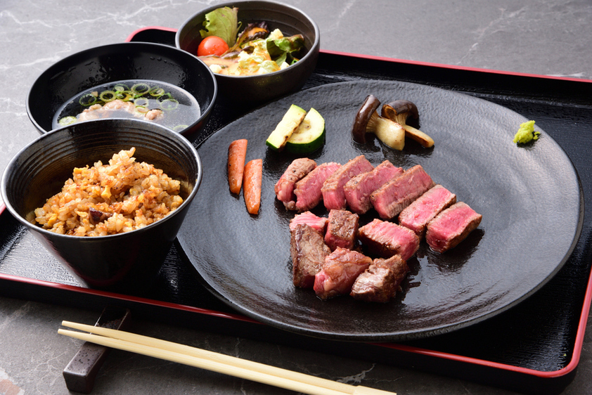 【伏見稻荷站步行2分鐘】A5級黑毛和牛牛排,超值之選! ★營業時間:上午11:00 - 晚上8:00。這家牛排鐵板燒餐廳位於伏見稻荷大社腳下。 我們供應A5級國產黑毛和牛,在餐廳內的大型鐵板上精心烤製! 我們提供多種牛排部位,包括西冷、菲力、夏多布里昂牛排和瘦肉,並可根據您的要求定制份量和熟度! (價格以50克為單位遞增。) 在我們休閒舒適的木質裝潢餐廳,享受頂級和牛的美味。